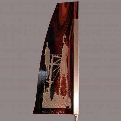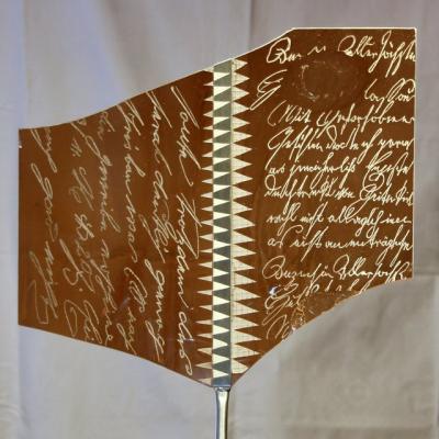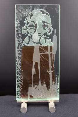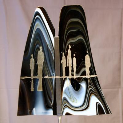 Künstlerische Freiheit und kunsthandwerkliche Sorgfalt ergeben hier aus Glasunikaten unter Einsatz beidseitiger Bearbeitungstechniken, der Malerei und des Airbrushs unikate Ergebnisse. Letztendlich geschmückt mit Prosa und Gedicht von Hesse, Rilke und Brecht.