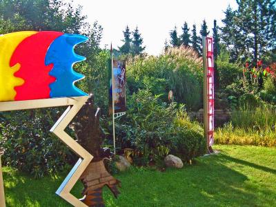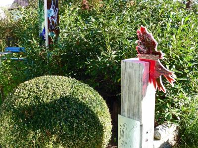 Der Goldfischteich, der Wohngarten und im Laufe der Jahre eigens dafür gewachsene Parzellen rund um Wohnhaus und Teich, sowie einige verborgene Örtchen, die nicht gleich einsehbar sind, die erst der Suche bedürfen und zeigen, wo Kunst im Garten geliebt, gelebt und auch gepflegt werden kann.