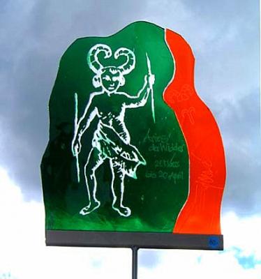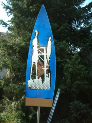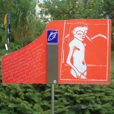 Ausführung: Stelen mit bildtragendem Edelstahlstab, mit und ohne Sockel, je nach Untergrund.