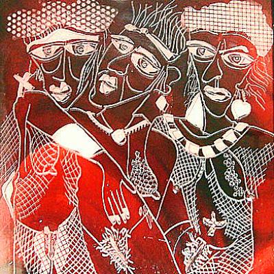 Sehr aufwändig gearbeitete Bilder, oft mehrschichtig verklebt als Collage.
